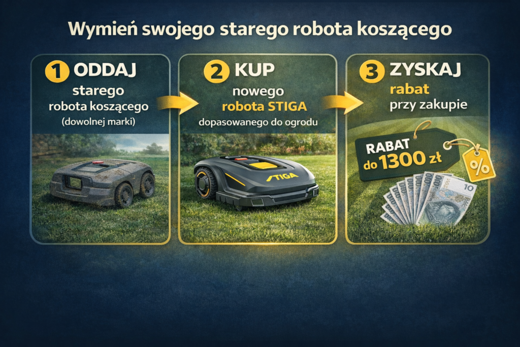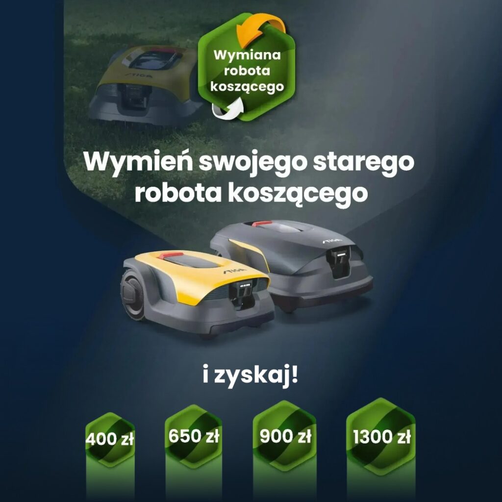 Co ważne, stary robot nie musi być marki STIGA. Do promocji kwalifikują się roboty koszące różnych producentów, o ile zostały wyprodukowane po 31 grudnia 2014 roku.
