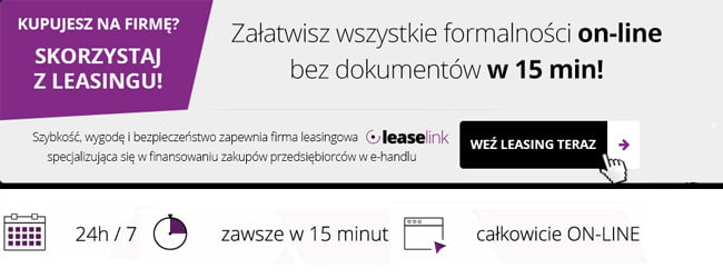 Niezależnie od tego, jakiego zakupu potrzebujesz do swojej firmy, sfinansujemy go leasingiem operacyjnym, pożyczką leasingową lub odroczoną płatnością. Firma Leaselink pomoże w finansowaniu Twoich zakupów dokonywanych zarówno w sklepach internetowych, jak i stacjonarnych. Finansują dowolne przedmioty o wartości 1 000 – 50 000 zł netto z wyłączeniem pojazdów.